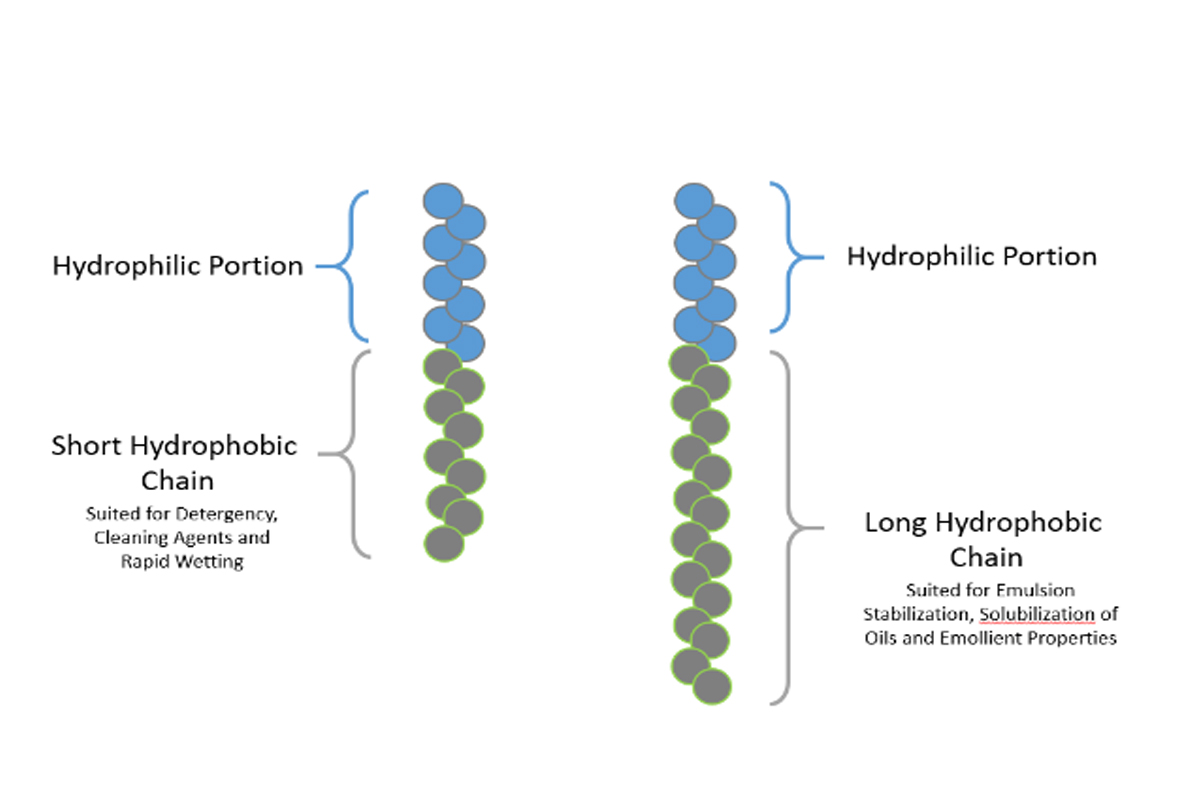 與相同摩爾乙氧基化的較長烷基鏈(+ C14)表面活性劑相比,這些較短的C9-C11烷基鏈?zhǔn)惯@些醇乙氧基化物通常以增加的速率潤濕受污染的表面。這種增加的潤濕速率是表面活性劑疏水鏈尺寸的直接結(jié)果,因為較小的烷基鏈傾向于比較大的烷基鏈在溶液中擴散得更快。 這些類型的醇乙氧基化物的擴散會迅速將表面活性劑帶入水和給定基材(空氣,棉花,灰塵等)的界面)。C9-C11非離子表面活性劑的這種快速擴散導(dǎo)致潤濕速率的增加,從而導(dǎo)致醇乙氧基化物的滲透性極強,可以穿透臟污的表面(即清潔浴室地面),因此通常用作洗滌劑、脫脂劑和清潔劑。將C9-C11醇乙氧基化物摻入清潔產(chǎn)品中可為消費者提供一種產(chǎn)品,該產(chǎn)品能夠更快、更有效地清潔臟污的表面,而不會在新清潔的表面上留下油性殘留物。